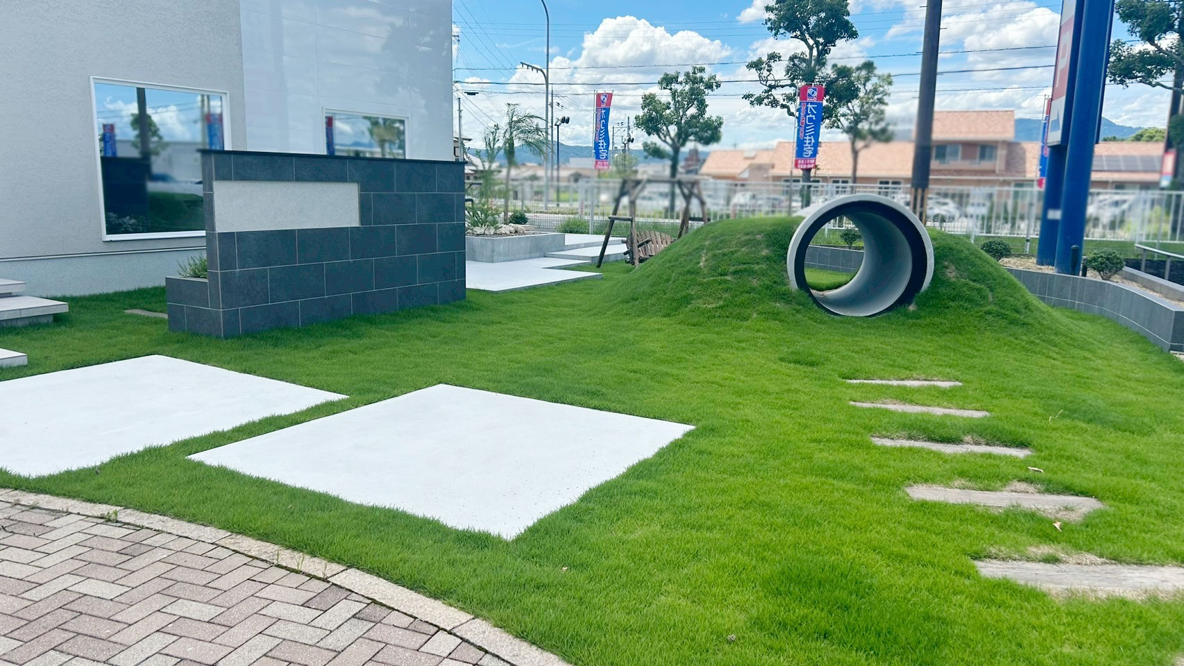 敷地内には土管トンネルや木製ブランコを設置し、お子さまが元気いっぱいに遊べるスペースを演出。