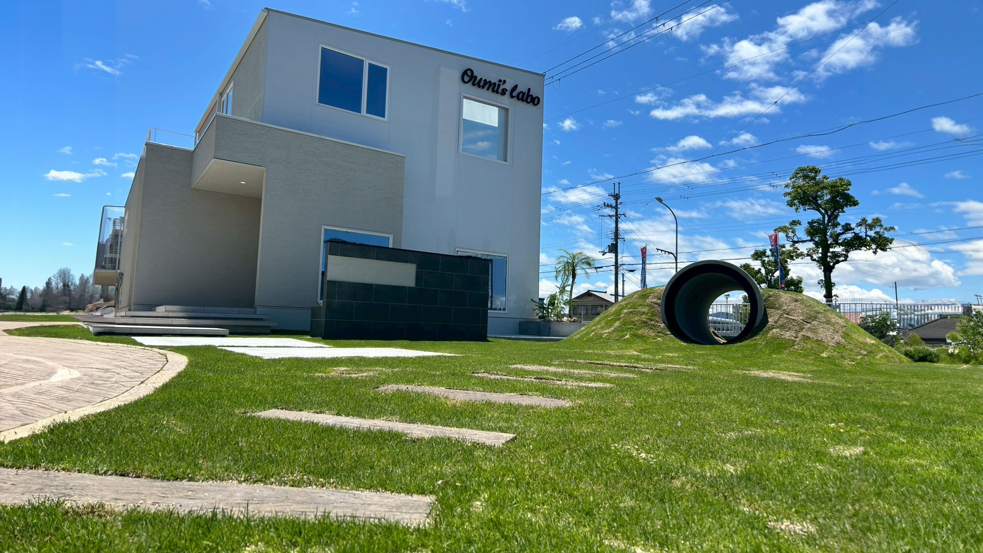 家族みんなで楽しめる、遊び心あふれる展示場外構をご提案しました。