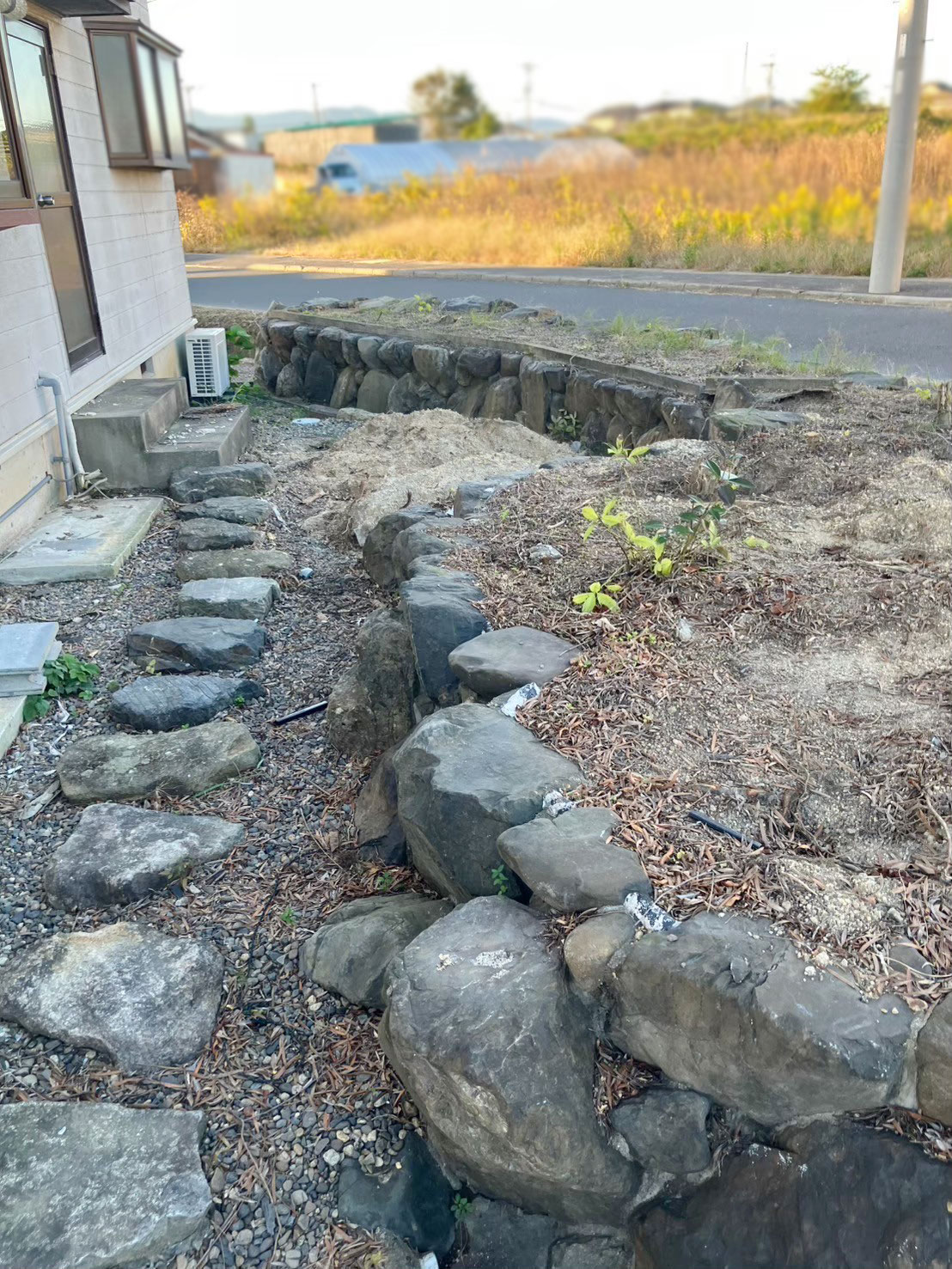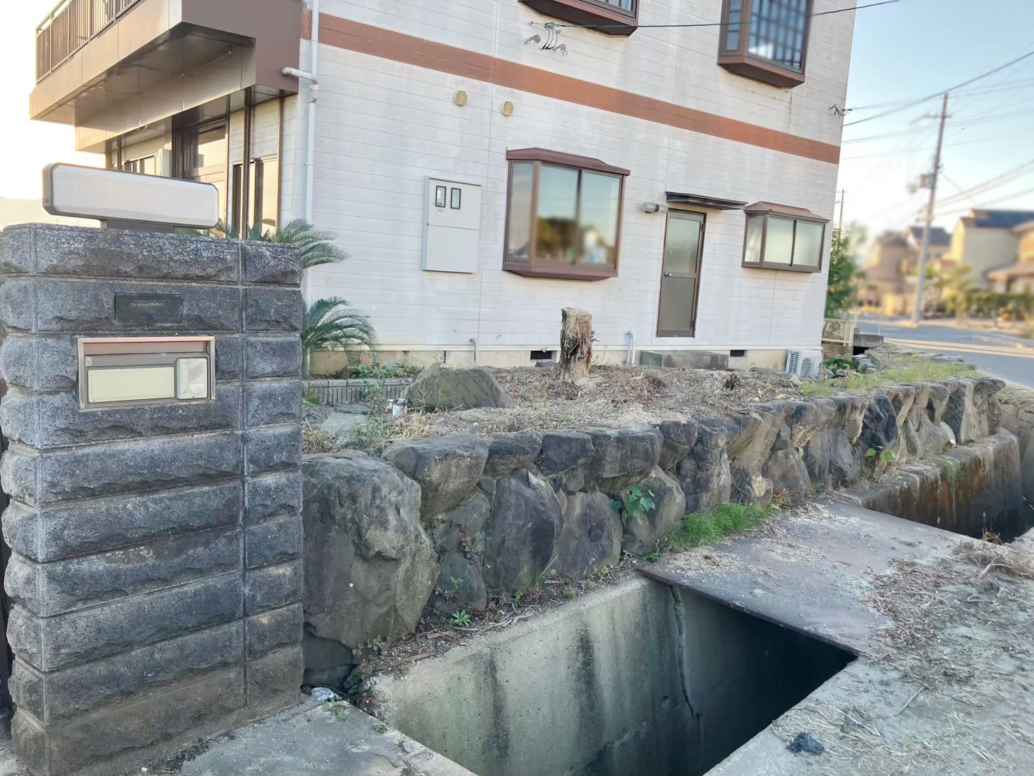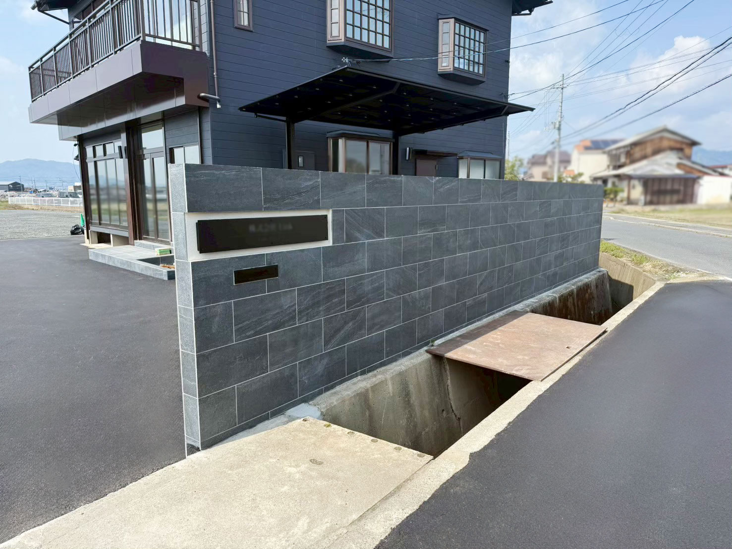 既存の石垣を撤去し、シックなタイル張りの塀へとリフォームしました。