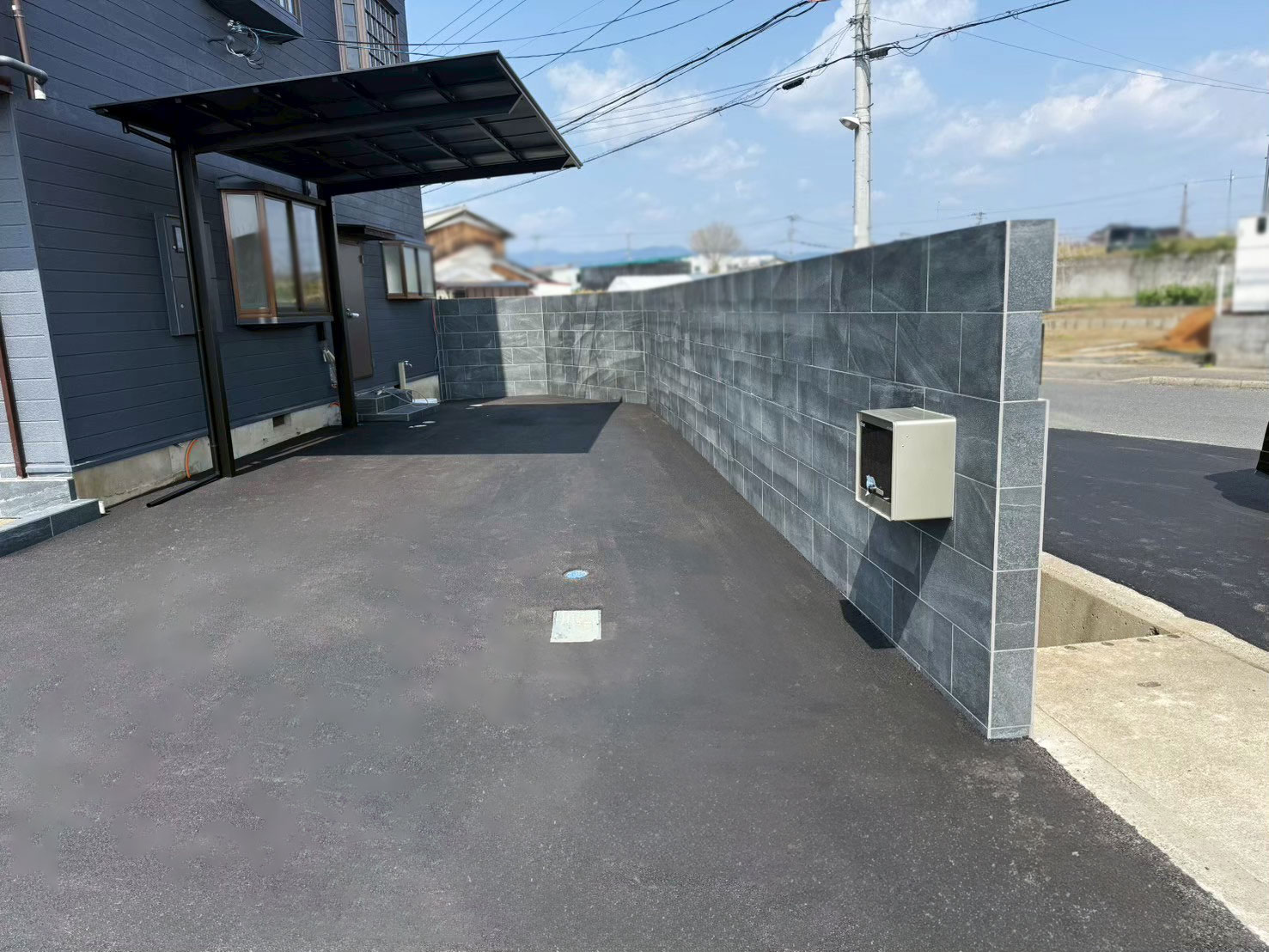 塀の裏側には駐車スペースを新設し、カーポートを設置。